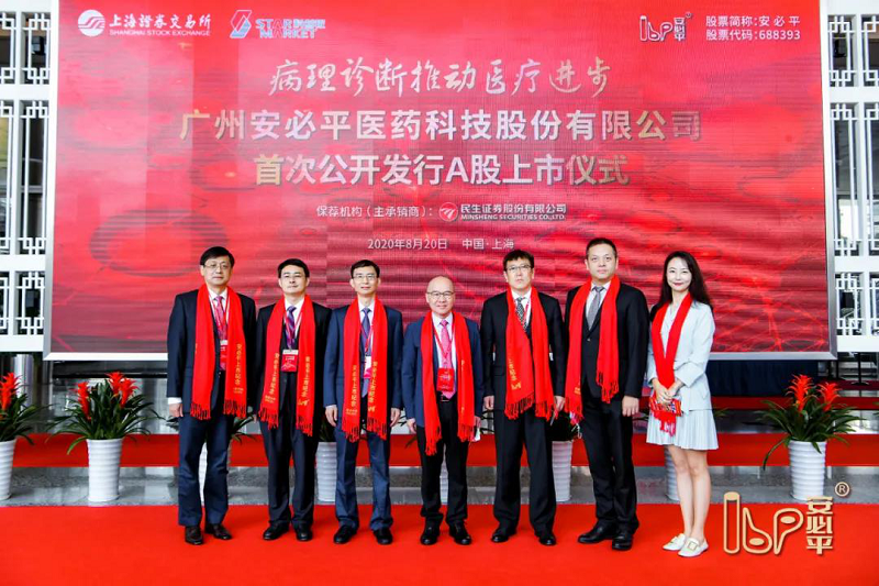 今天,广州安必平医药科技股份有限公司(证券简称:安必平,证券代码:688393)科创板上市仪式在上海证券交易所及上海证券交易所南方中心(广州)同步举行,这是国内病理诊断领域第一股,也是安必平历史的重要一刻。安必平董事长、总经理蔡向挺先生、广州开发区管委会副主任张晖先生、广州开发区金融工作局副局长汤克明先生、民生证券股份有限公司执行副总裁、投资银行事业部总裁杨卫东先生、安必平董事、董事会秘书、副总经理汪友明先生、安必平董事陈吾科先生、股东代表深圳高特佳弘瑞投资董事长黄青女士、中山大学Ezpay钱包基因股份有限公司董事、总经理周新宇先生等股东及中介团队代表、安必平高管团队等出席了本次在上海证券交易所举行的安必平科创板上市仪式,共同见证这一具有里程碑意义的时刻。