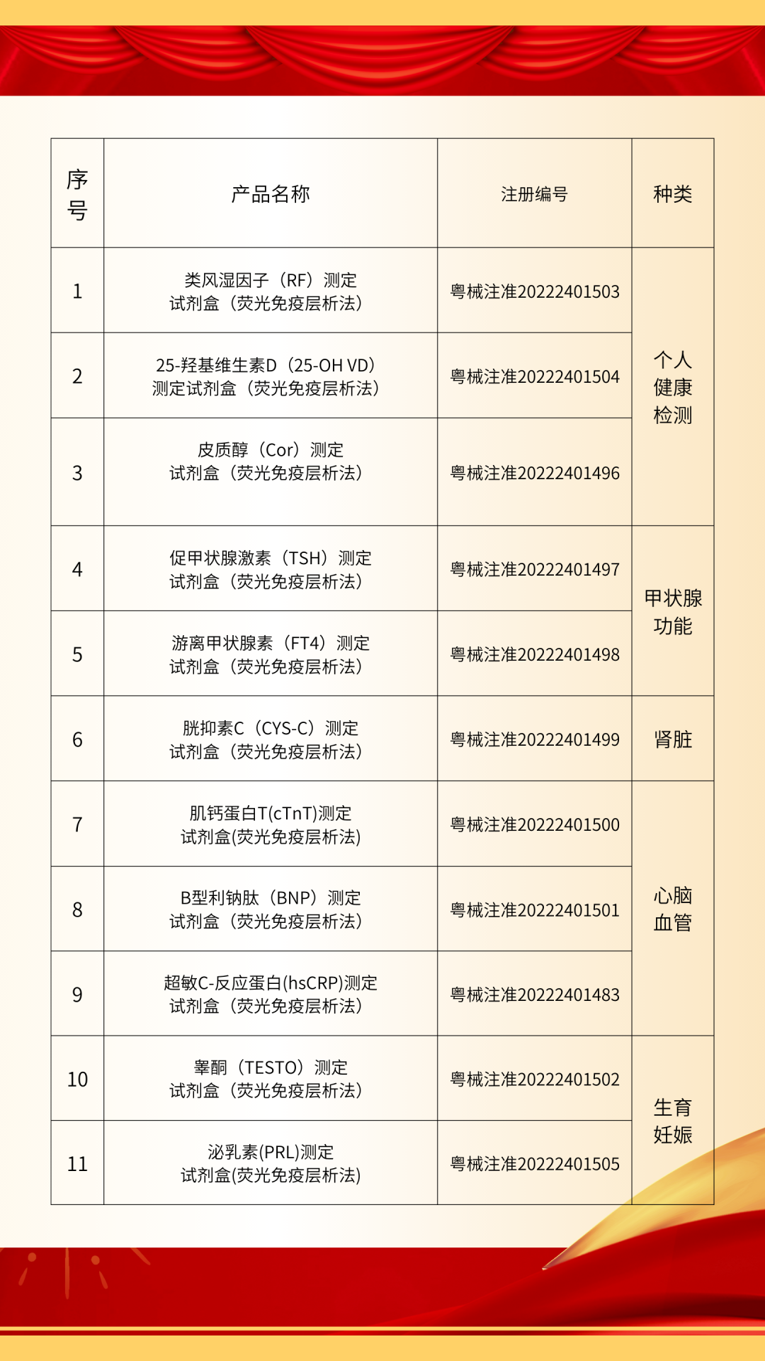 此次获证的产品涵盖了7大类检测项目,检测范围涵盖心脑血管疾病、肾脏类疾病、骨质疏松、类风湿、甲状腺疾病、糖尿病、性激素等常见疾病,实现临床多样化的辅助诊断。至此中山生物已经有34项POCT产品获批。
